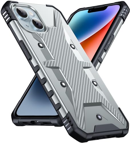 DASFOND Designad för iPhone 14/iPhone 13-fodral – [stötsäkert militärklass] robust skyddsfodral, halkfri repfri med airbag-stötfångare telefonfodral för telefon 14/13 fodral, silver