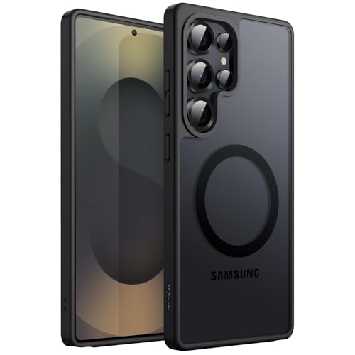 JETech Magnetisk Skal för Samsung Galaxy S25 Ultra 5G, Kompatibel med MagSafe, Genomlysande Matt Baksida Stötsäker Telefon Fodral Case (Titanium Black)