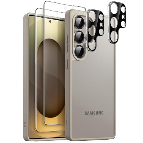 JETech Matte Skal för Samsung Galaxy S25 Ultra 5G med 2-Pack Varje Skärmskydd och Kameralinsskydd, 5 i 1 Genomlysande Baksida Telefon Case Fodral, Härdat Glasfilm (Titanium Gray)