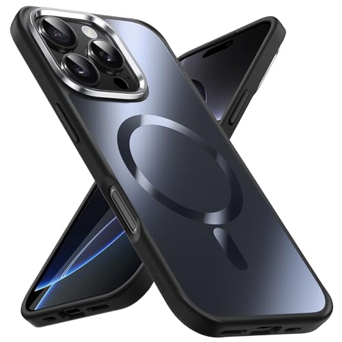 JETech Magnetisk Skal för iPhone 16 Pro 6,3 Tum Kompatibel med MagSafe, Lyxig Metallisk Lyster Matte Tillbaka Smal Stötskyddad Elektropläterad Telefon Fodral Case (Svart)