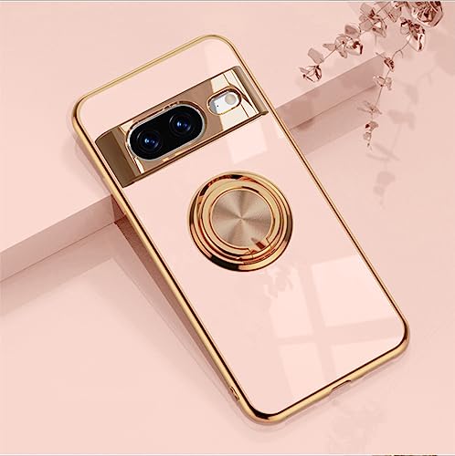 XINYEXIN Google Pixel 8 fodral med ringstativshållare 360 graders roterande ställ mode stötsäker telefon skyddande fodral för Google Pixel 8 – rosa