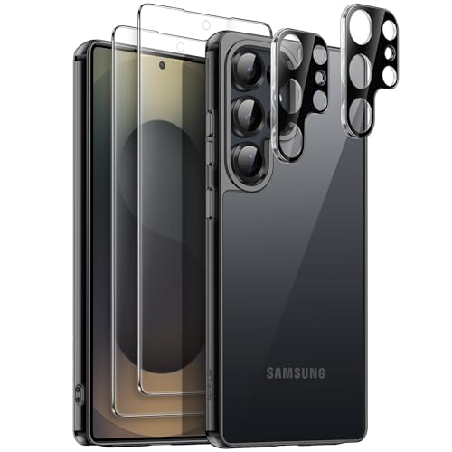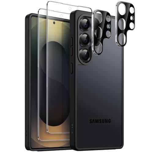 JETech Matte Skal för Samsung Galaxy S25 Ultra 5G med 2-Pack Varje Skärmskydd och Kameralinsskydd, 5 i 1 Genomlysande Baksida Telefon Case Fodral, Härdat Glasfilm (Titanium Black)