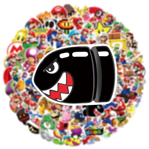 POPOYU Mario 100 klassiska vattentäta klistermärken för dator, telefon, flaska, skateboard, resväska, gitarr, kudde, scrapbook för barn, gästpresenter