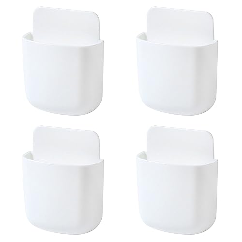 XHNFCU 4 st vit väggmonterad fjärrkontroll förvaringsbox självhäftande fjärrkontrollhållare telefon laddningsställ hållare för fjärrkontroll, penna, mobiltelefon, tandborste, tandkräm