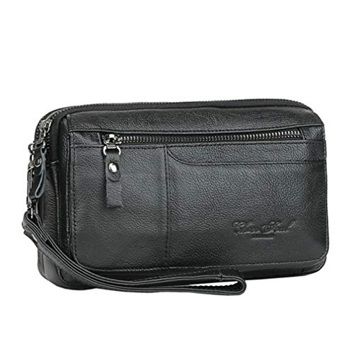 Läder Clutch Plånbok Lång Plånbok för män Telefon Organizer Hållare Handledsväska Day Pack Dagsäck Business Handväska Svart