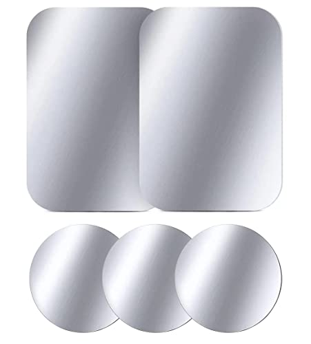 Metallplatta för Magnet Telefon Hållare 5 delar - WONLIVE Metall Platta med Vhäftande för Biltelefonmagnet, 3 Runda och 2 Rektangel, Silver