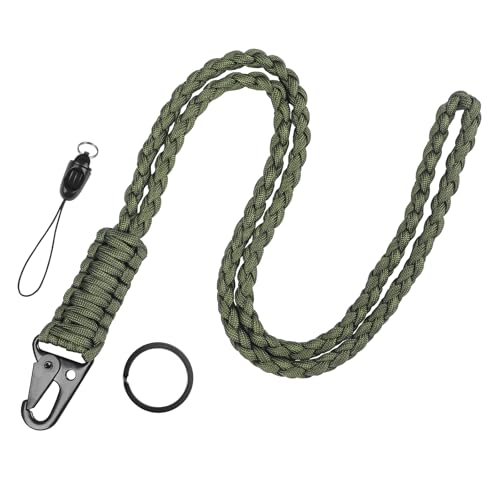 Uniclife Paracordnyckelband för nycklar, nyckelband för män, flätad nyckelband, kraftigt reprep för utomhusöverlevnad, lång klassisk halsbricka för nycklar ID bricka hållare telefon (armégrön)