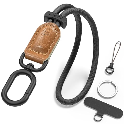 SURPHY Justerbar Handrem för Mobiltelefoner - Universellt Bärband för Telefon, Hörlurar, Nycklar och Kort, Svart & Brun