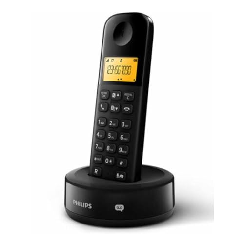 PHILIPS Fast telefon D2601B/01 Single – trådlös telefon – 1'6 tums skärm – telefonbok – samtalsnummer-igenkänning – kort numreringsknappar – lång räckvidd – svart