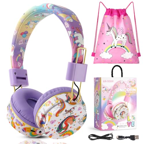 AXFEE Bluetooth justerbara hopfallbara barnhörlurar, HD stereoljud, TF-kort, 3,5 mm ljud, lämplig för PC, telefon, iPad, arbetsrum, resa, skola (lila)