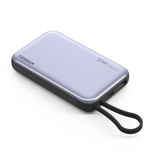 TESSAN Power Bank med 4 portar, Power Bank 10000mAh, Trådlös 20W PD Snabbladdning, Externa Batterier USB C För Telefon, Laddare Med Lightining Laddningskabel, Bärbar Storlek