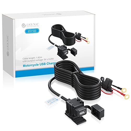 ESynic Professionell motorcykel USB-uttag vattentät 1,82 m motorcykel USB-uttag motorcykel USB-laddare med en 2,1 A 12 V/24 V USB-strömförsörjningsport perfekt för telefon och GPS etc