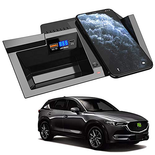 Braveking1 Trådlös Auto laddare för Mazda CX5 2017 2018 2019 2020 Central Console Tillbehör Panel 15W Snabb laddning Bil Laddare Telefon med USB QC3.0 PD Port och 18W för iOS Android