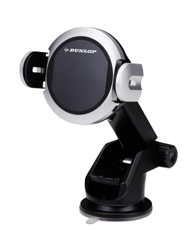 Dunlop Induktionshållare för telefon och laddare - trådlös laddare med Qi - med sugkopp för fastsättning på instrumentbrädan och vindrutan - telefoner från 65 mm till 92 mm breda - plast - svart