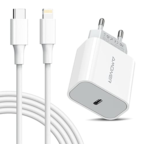Amoner 20 W USB C-laddare med Lightning-kabel 1 m, USB C-strömförsörjning USB C-kontakt kompatibel med telefon 13,13 Pro, 13 Pro Max, 12 Pro, SE 2020 etc.
