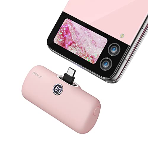 IWALK USB-C bärbar laddare på 4 800 mAh, 20 W, powerbank, litet snabbladdande batteripaket med LED-skärm kompatibel med iPhone 15 Plus/15 Pro Max/iPad/AirPods Andriod telefon, Samsung, rosa