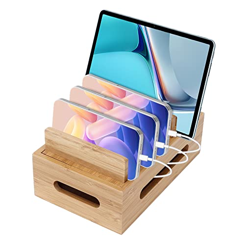 Trä laddningsstation för flera enheter, universell hållare dockningsstation USB multi-laddare organiserare kompatibel med telefon, surfplatta, klocka, öronsnäckor