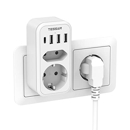 TESSAN USB Eluttag 2 Vägs Multikontakt, Vägguttag USB med 3 USB och 1 USB C Laddare Adapter (3 A), 6 i 1 3600W USB Uttag 3 Vägs, Grenuttag USB, Väggladdare Kompatibel med Telefon, Bärbar Dator