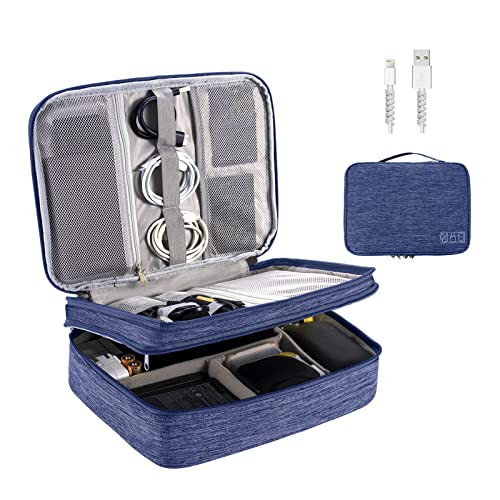 Gocokia Dubbelskikt resekabel organiseringsväska med handrem, elektronisk tillbehörsförvaringsväska för datakabel, USB-laddare, telefon, U-skiva, möss tillbehör – blå M, BLÅ, Mode