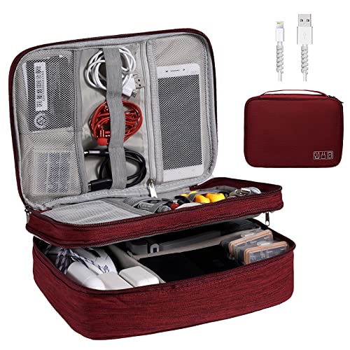 OrgaWise Väskor för Att Organisera Kablar Kabelväska för Resor Resekabelorganiserare för Bärbar Powerbank Kabel Laddare Telefon (Röd, 3 lager)