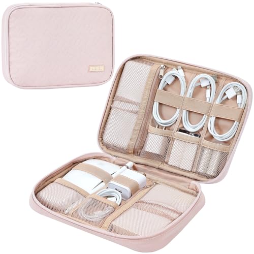 NISHEL Elektronisk organisatör, resekabel teknisk organiseringsväska, packning nödvändigheter för kabel, laddare, telefon, hårddisk, USB, SD-kort, rosa