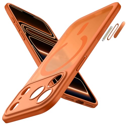 JETech Magnetisk Skal för iPhone 17 Pro Max 6,9-Tum Kompatibel med MagSafe, Genomlysande Matte Baksida Smal Minimalistisk Stötsäker Telefon Fodral Case (Orange)
