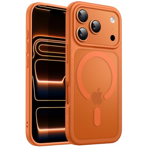 JETech Magnetiskt Skal för iPhone 17 Pro 6,3-Tum Kompatibel med MagSafe, Kameralinsen Fullt Skydd, Genomlysande Matte Baksida Smal Minimalistiska Stötsäker Telefon Case Fodral (Orange)