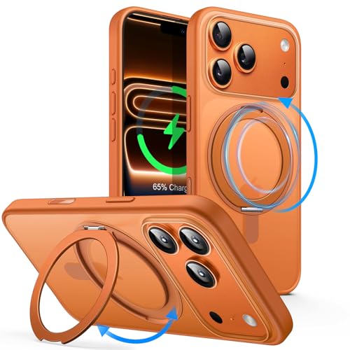 JETech 360 Grader Roterbart Ring Skal för iPhone 17 Pro 6,3-Tum med Kamerakontroll Knapp, Kompatibel med MagSafe, Smal Stötsäker Telefon Case Fodral med Stående & Ringhållare (Orange)