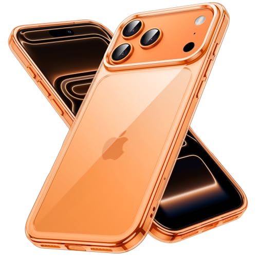 JETech Skal för iPhone 17 Pro Max 6,9-Tum, Icke-Gulning Stötsäker Telefon Bumper Case, Anti-Skrapa Genomskinlig Baksida (Orange)