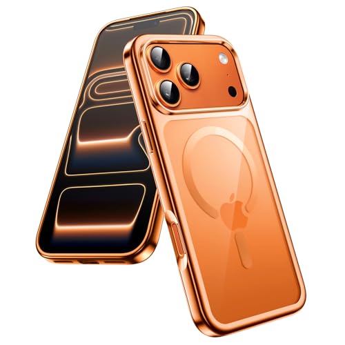 JETech Magnetiskt Skal för iPhone 17 Pro 6,3-Tum Kompatibel med MagSafe, Mjuk Elektropläterad TPU Ram med Hård Klar PC Baksida, Stötsäker Telefon Case Fodral (Orange)