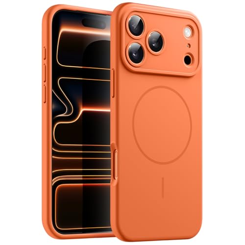 JETech Magnetiskt Silikonskal för iPhone 17 Pro Max 6,9-Tum, Kompatibel med MagSafe, Silkeslen Känsla, Skokabsorberande Telefon Case Fodral med Kameraskydd (Orange)