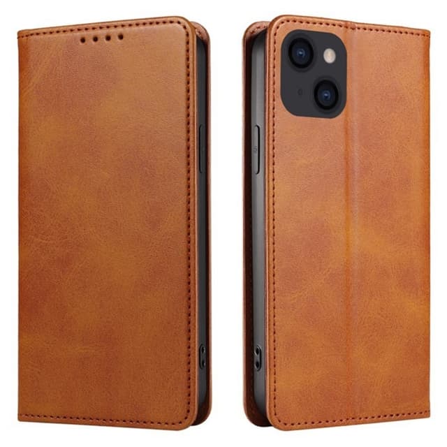 Plånboksställ Telefon Fodral Skal för iPhone 15 - Brun