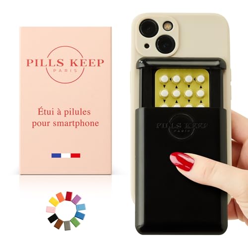 P-pillerfodral - för att fästa på telefon eller smartphone skal - pillerbox tillverkad i Frankrike - fodral för läkemedel, bankkort, ID-kort - svart