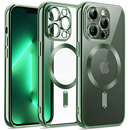 JETech Mjuk Klar Skal för iPhone 13 Pro Max 6,7-Tum, Kameralinsskydd Full Skydd, Kompatibel med MagSafe Trådlös Laddning, Stötsäker Elektropläterad TPU Telefon Case (Grön)