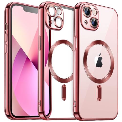 JETech Mjuk Klar Skal för iPhone 13 6,1-Tum, Kameralinsskydd Full Skydd, Kompatibel med MagSafe Trådlös Laddning, Stötsäker Elektropläterad TPU Telefon Case (Różowy)