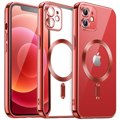 JETech Mjuk Klar Skal för iPhone 12 6,1-Tum, Kameralinsskydd Full Skydd, Kompatibel med MagSafe Trådlös Laddning, Stötsäker Elektropläterad TPU Telefon Case (Ljus Röd)