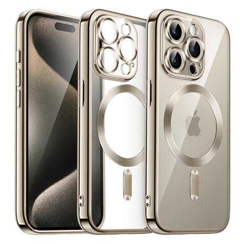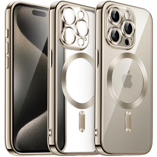 JETech Mjuk Klar Skal för iPhone 15 Pro Max 6,7-Tum, Kameralinsskydd Full Skydd, Kompatibel med MagSafe Trådlös Laddning, Stötsäker Elektropläterad TPU Telefon Case (Naturligt Titan)