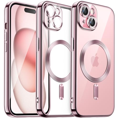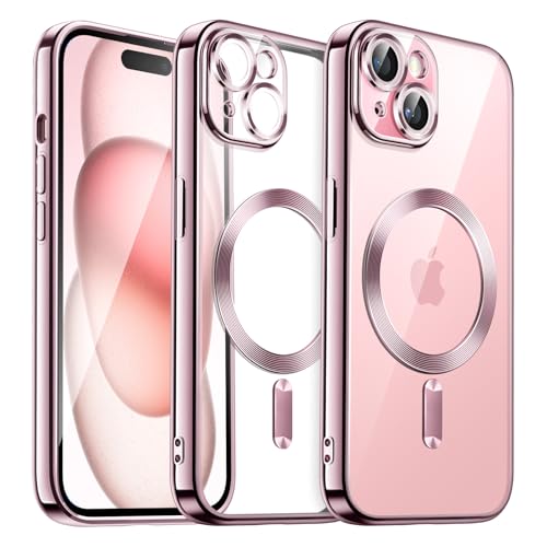 JETech Mjuk Klar Skal för iPhone 15 6,1-Tum, Kameralinsskydd Full Skydd, Kompatibel med MagSafe Trådlös Laddning, Stötsäker Elektropläterad TPU Telefon Case (Rosa)