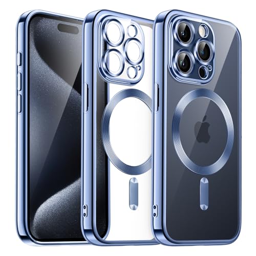 JETech Mjuk Klar Skal för iPhone 15 Pro Max 6,7-Tum, Kameralinsskydd Full Skydd, Kompatibel med MagSafe Trådlös Laddning, Stötsäker Elektropläterad TPU Telefon Case (Sierrablå)