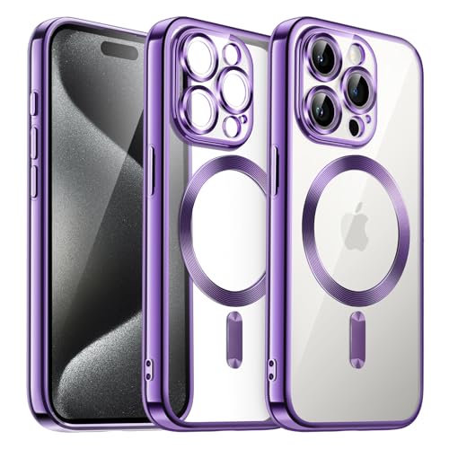 JETech Mjuk Klar Skal för iPhone 15 Pro 6,1-Tum, Kameralinsskydd Full Skydd, Kompatibel med MagSafe Trådlös Laddning, Stötsäker Elektropläterad TPU Telefon Case (Lila)