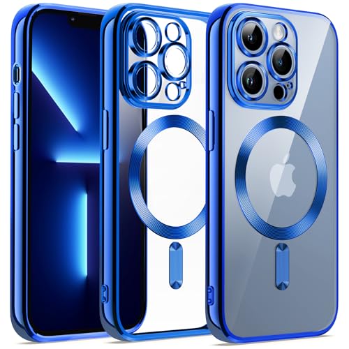 JETech Mjuk Klar Skal för iPhone 13 Pro 6,1-Tum, Kameralinsskydd Full Skydd, Kompatibel med MagSafe Trådlös Laddning, Stötsäker Elektropläterad TPU Telefon Case (Kungsblå)