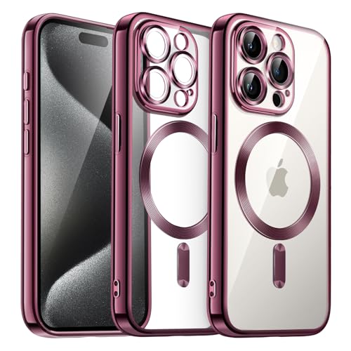 JETech Mjuk Klar Skal för iPhone 15 Pro 6,1-Tum, Kameralinsskydd Full Skydd, Kompatibel med MagSafe Trådlös Laddning, Stötsäker Elektropläterad TPU Telefon Case (Röd)