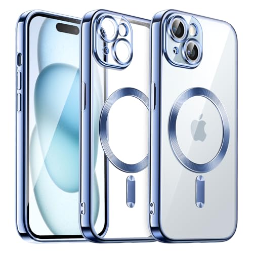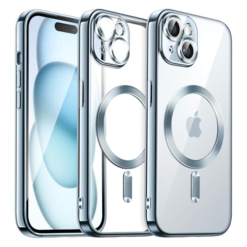 JETech Mjuk Klar Skal för iPhone 15 6,1-Tum, Kameralinsskydd Full Skydd, Kompatibel med MagSafe Trådlös Laddning, Stötsäker Elektropläterad TPU Telefon Case (Sierrablå)