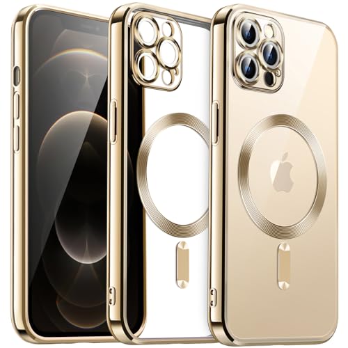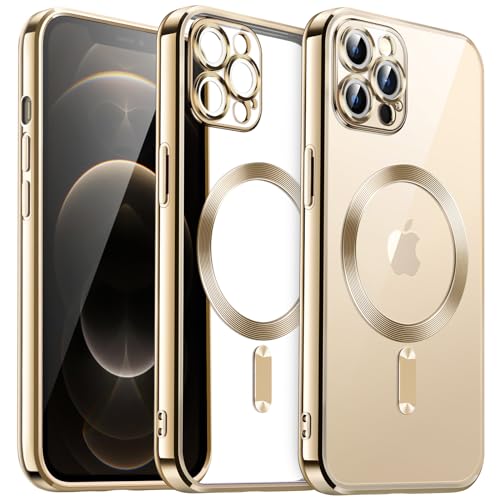JETech Mjuk Klar Skal för iPhone 12 Pro Max 6,7-Tum, Kameralinsskydd Full Skydd, Kompatibel med MagSafe Trådlös Laddning, Stötsäker Elektropläterad TPU Telefon Case (Guld)