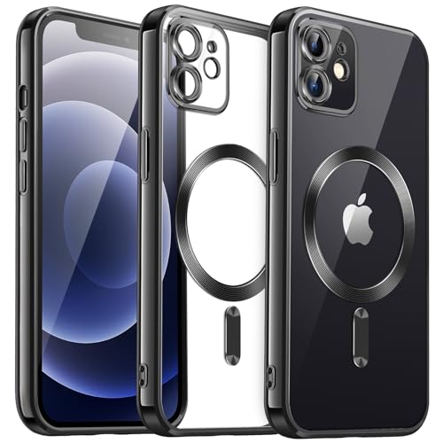 JETech Mjuk Klar Skal för iPhone 12 6,1-Tum, Kameralinsskydd Full Skydd, Kompatibel med MagSafe Trådlös Laddning, Stötsäker Elektropläterad TPU Telefon Case (Svart)