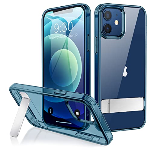 JETech Skal Kompatibel med iPhone 12 mini 5,4 Tum med Stativ, Stöd Trådlös Charging, Smal Stötskyddad Bumper Telefon Cover, 3-Vägs Stativ i Metall (Marin)