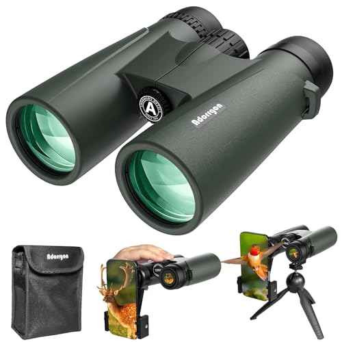 Gosky 10 x 42 kikare för vuxna, professionell HD-kikare, kikare för fågelskådning, resor, stjärnskådning, jakt, konsert, sport – BAK4 Prism FMC-objektiv – med telefonadapter
