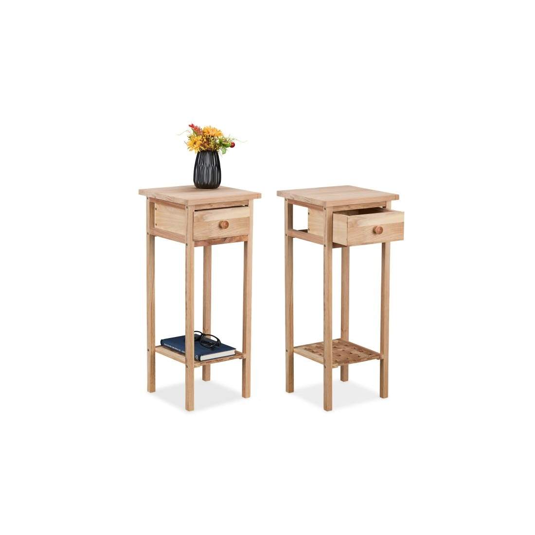 Relaxdays Sidobord valnöt med låda, 2 hyllor telefonbord, högt träbord H x B x D: 80 x 35 x 30 cm, natur