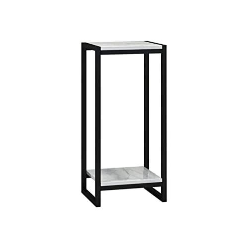 Telefonbord Med Marmorhylla, Högt Smalt Vardagsrums Gavelbord 2-vånings Sidobord Hörnsängbord För Vardagsrummets Sovrum, Ingen Montering Krävs(Size:30 * 30 * 70cm,Color:Svart)