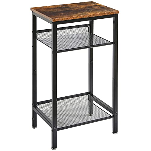 YMYNY Soffbord, telefonbord, sängbord med hyllor, industriell stil, justerbart metallnät, för vardagsrum, sovrum, kontor, rustik brun och svart HST005H